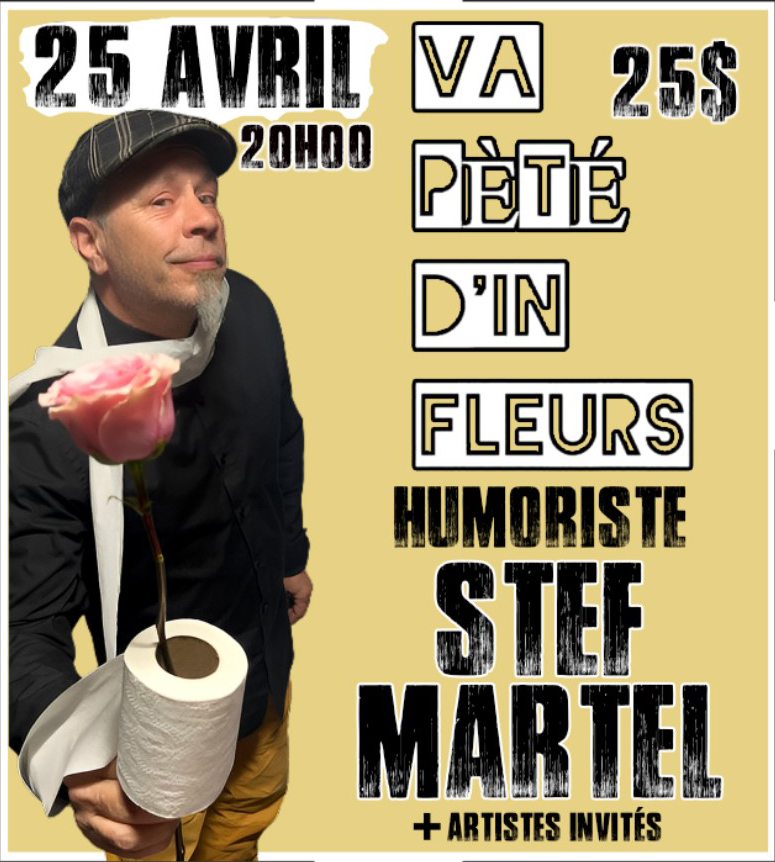 La vie, c’est pas juste de la marde : Des sketchs, monologues et dérision sont au rendez-vous dans ce spectacle d’humour où Stef Martel nous amène dans nos pensées et tracas de tous les jours….! La famille Nos ados La santé Le travail , etc.